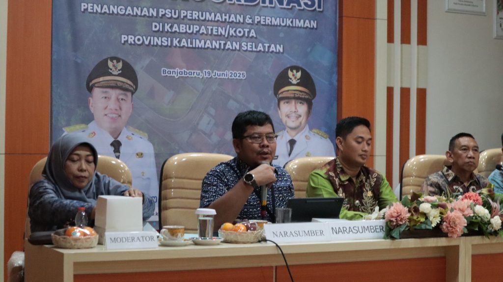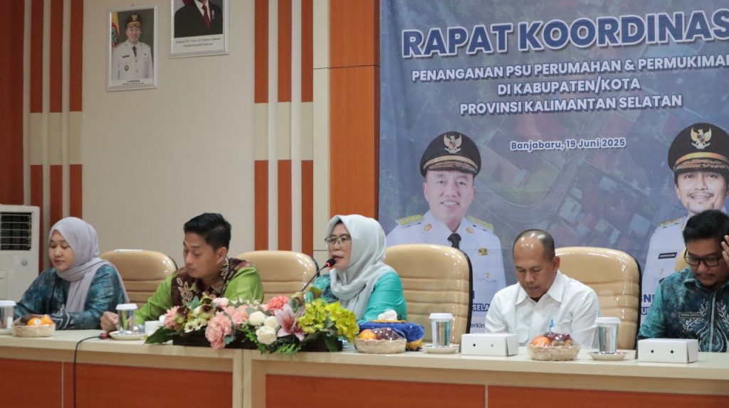 Banjarbaru, 19 Juni 2025, Dalam rangka pemenuhan PSU pada perumahan dan permukiman yang layak di Provinsi Kalimantan Selatan, Dinas Perkim Prov.Kalsel melaksanakan Rapat Koordinasi Penanganan PSU di Aula Dinas Perkim Lt.3. Rapat ini dibuka oleh Kepala Dinas Perkim Prov.Kalsel, Ibu Ir. Mursyidah Aminy, MT yang diwakili oleh Sekretaris Dinas. Dalam pembukaannya, beliau menyampaikan akan mendorong percepatan pelaksanaan penyerahan PSU dai pengembang kepada Pemerintah Daerah, sehingga dapat meminimalisir permasalahan yang ada di Kabupaten/Kota Se Provinsi Kalimantan Selatan.